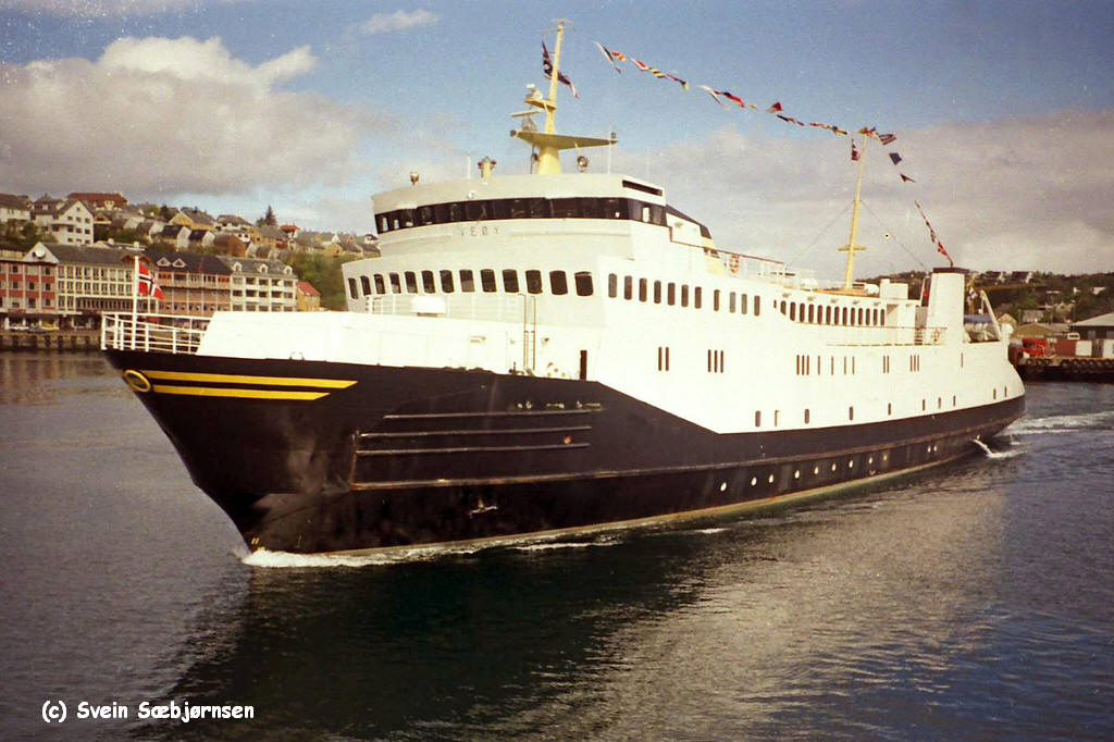 ![]() Flaggskipet "Veøy" ble overlevert i 1974. (Foto: ukjent) |