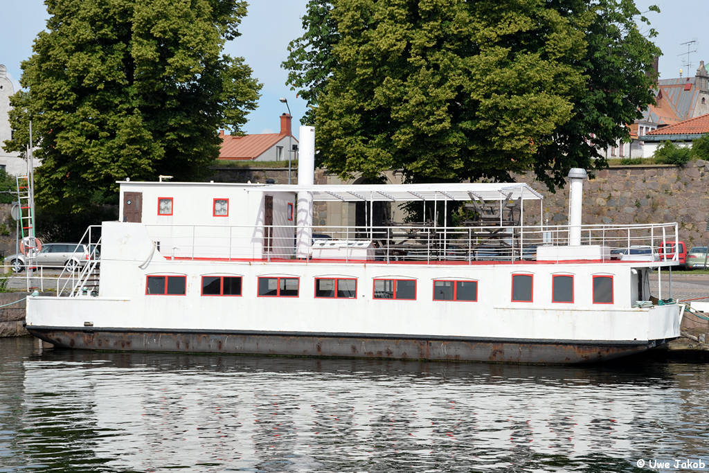 1935 - 1953 Brevik - Stathelle lt. norweg. Register 10.1953 nach Schweden verkauft !! 1953 - 1965 Lillsved (Värmdö) - Tranvik (Ljusterö), S 1965 - 1975 Frachtfähre Vaxholm 1975 - 1989 Vaxholm - Norra Tynningö, S 1989 Umbau zum Restaurantschiff 1989 - ? Restaurantschif in Borgholm, Öland ab 1995 registriert als Restaurantprahm Restaurantschiff (?) - noch 07.2015 aufliegend in Kalmar gesehen - in Skeppslista 2017 als "restaurangpråm" |