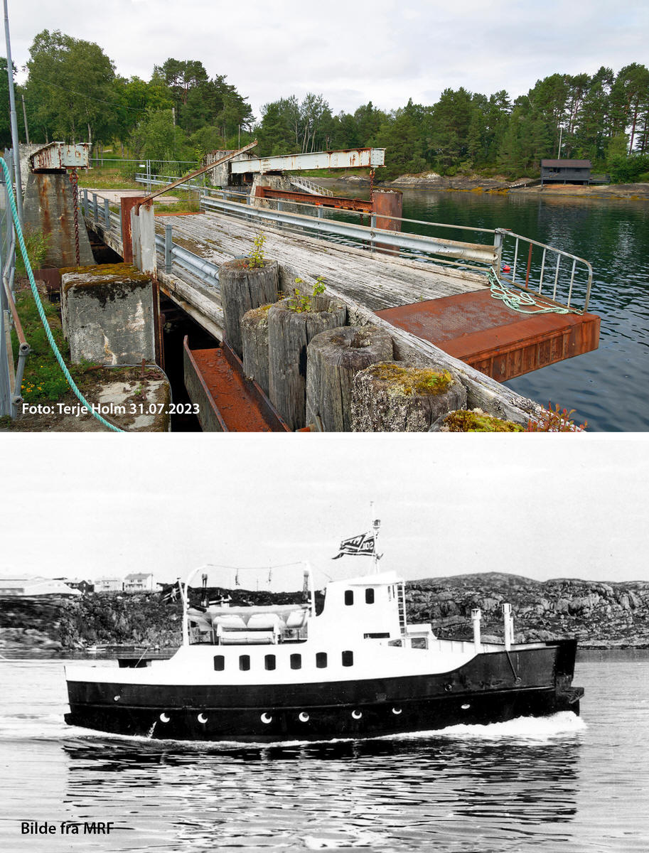![]() Gamle Ånes ferjekai fra 1961 står her i 2023. "Solskjel" (I) trafikkerte her 1964-1967. |