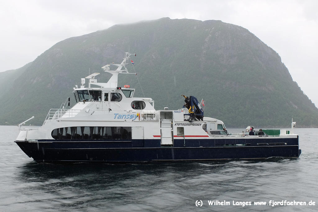 Auslieferung 01.2007 Schiffstaufe 26.1.2007 2007 - 2012 Florabassenget + Kystekspressen Florø – Smørhamn – Måløy - war ab 05.2013 für Nordeide - Måren - Ortnevik geplant, dies wurde von der Fylkeskommune nicht akzeptiert - steht zum Verkauf (Info 05.2013) - Sommer 2016 doch Einsatz Nordeide - Måren - Ortnevik dort bis 04.2022 Kaupanger-Frønningen 15.06.- xx.2022 x.2022 - 04.2024 Nordeide - Måren - Ortnevik 2024/2024 Umbau zum Elektrobetrieb xx.2025 - ... Vassøy - Stavanger |