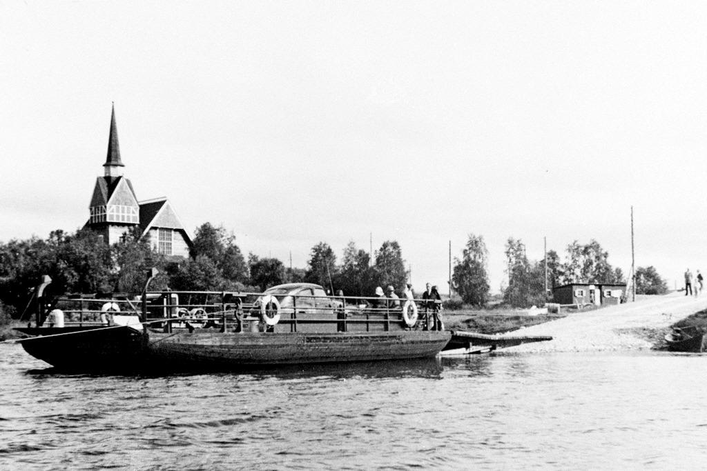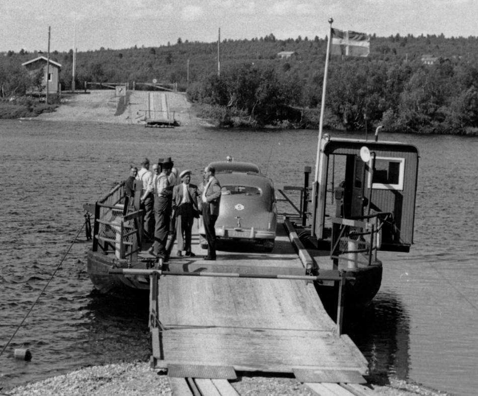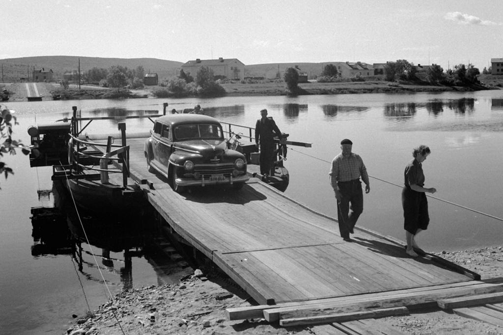 ![]() ![]() Färjled över Muonio älv vid Karesuando. Väg 343 Nedre Soppero - riksgränsen vid Karesuando. Foto: Carl Rydberg - https://digitaltmuseum.org/ CC-BY |