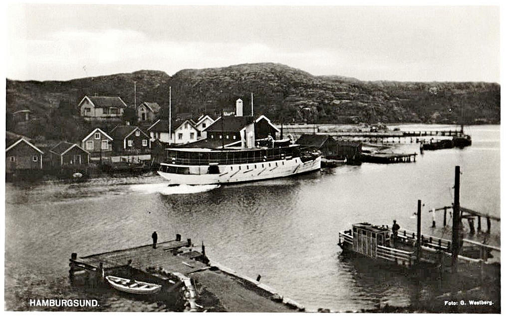 ![]() 1953-års färja mellan Hamburgsund-Hamburgö. Foto: Kville Hembygdsarkiv fotograf: Olof Olsson, Bräcke Bildquelle: https://kvh.kulturhotell.se/ |