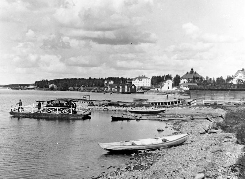 ![]() Strömsund från gamla färjläget på Näsvikssidan med dragfärjan liggande inne i början på 1920. Foto: August Lundholm Bildquelle - Public Domain |