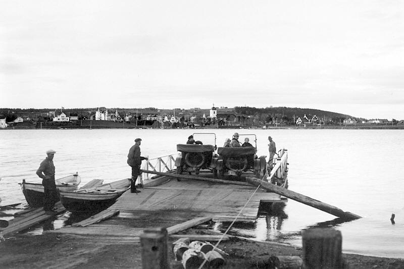 ![]() Gamla färjan med färjman Erik Karlsson framför Lundholms T-Ford, 1923-års modell. Foto från 1923. "JLM 84X160 3 – Sjöfart", Hämtad 19 september 2025 från platsen: Stiftelsen Jamtlis Samlingar, https://jlm.kulturhotell.se/objects/c60-136252/ |