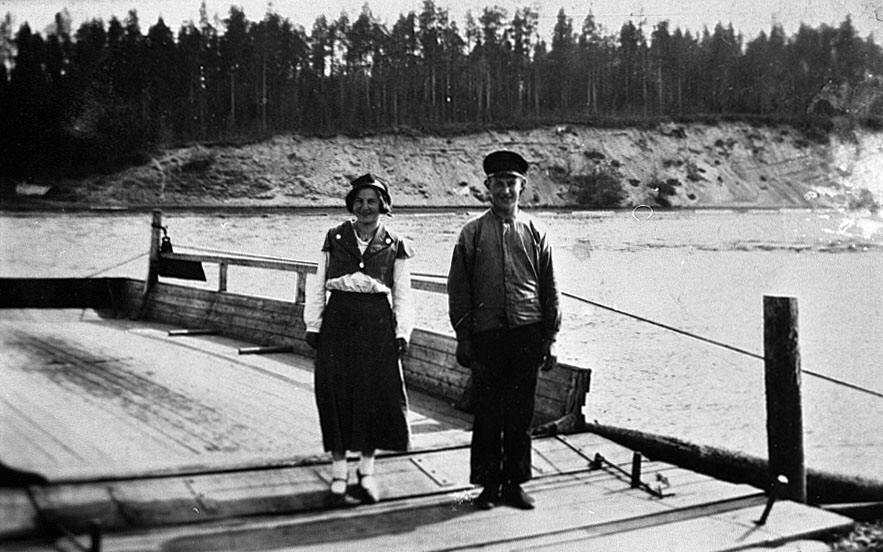 ![]() Färjan i Vidsel någon gång på 1920-talet. - Bildquelle - http://www.vidsel.nu Den första färjan rodde man över älven och in i Pansikån, där man landade på västra sidan. År 1922 byggdes en bro över ån och man övergick till att använda en linjefärja som hade sina angöringsplatser ungefär där nu brofästena över Piteälven är placerade. Denna bro över älven byggdes för övrigt så sent som år 1942-43. Textquelle - |