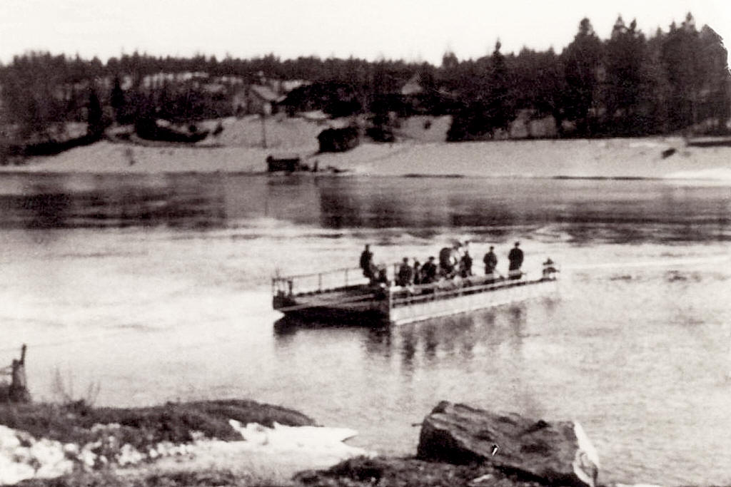 ![]() Jääski, Kirchenbezirk Haikola, die Fähre über den Vuoksi während des Fortsetzungskriegesals Brückenersatz Fotolink 1942 - 1943 - CC BY 4.0 |
