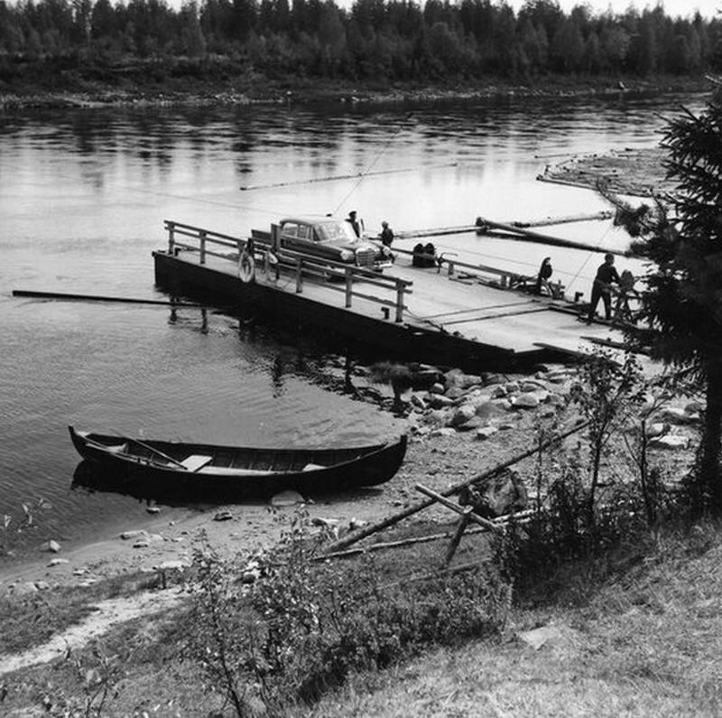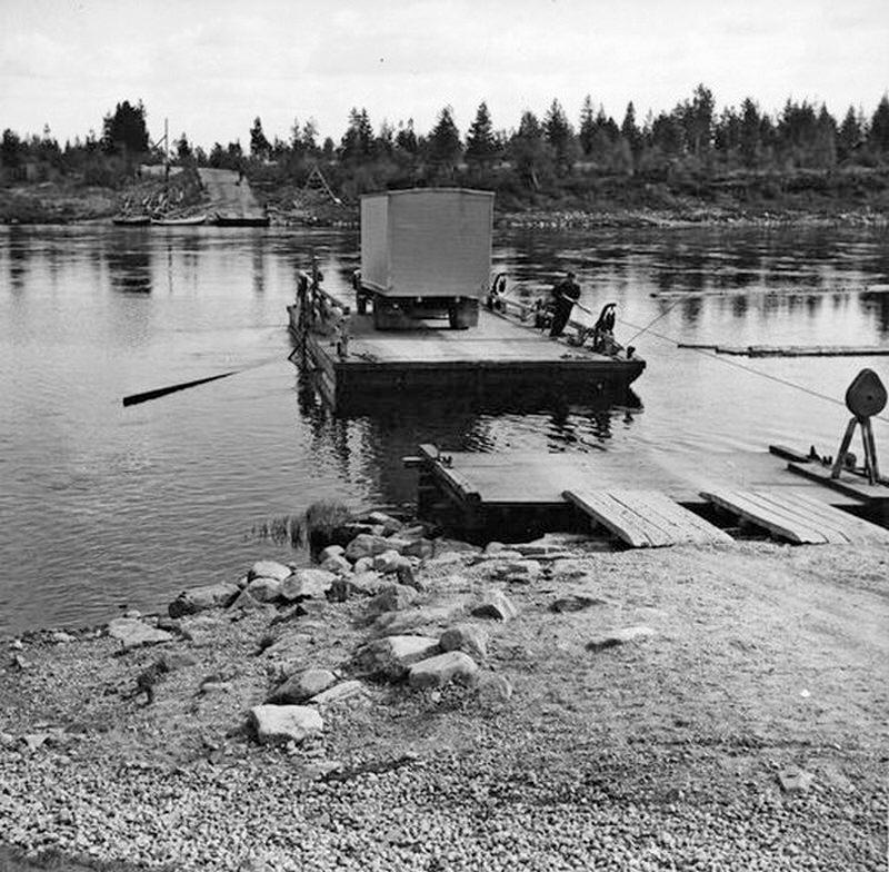 Kipinän lossi 120 m; über den Iijoki(Gemeinde Pudasjärvi) -> nn: ? - 1969 1948/1953 - handgetriebene 6-to Holzfähre am Hochseil) |