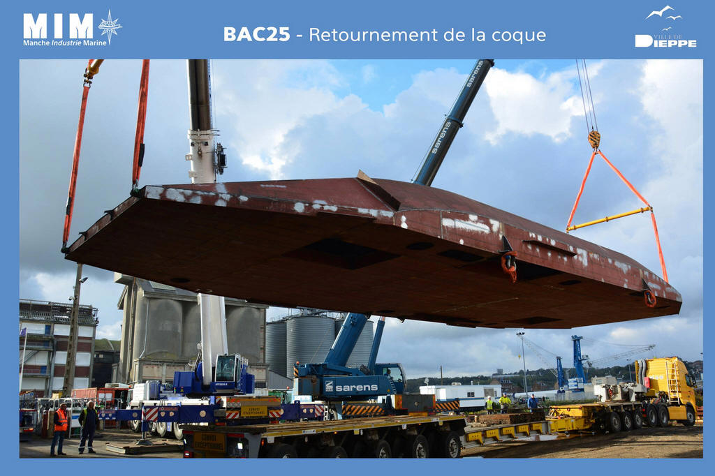 ![]() 27.5.2021 Bac 25 wird zu Wasser gelassen Foto: Manche Industrie Marine, Dieppe https://www.facebook.com/mim.dieppe/photos/pcb.4117707821642562/4117707211642623/ |