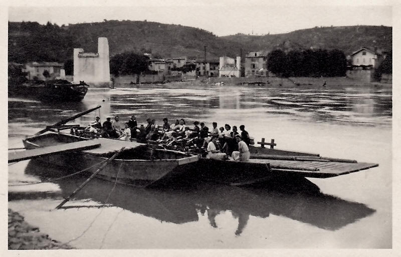 Ersatzfährbetrieb nach Zerstörung der Rhonebrücke 1944