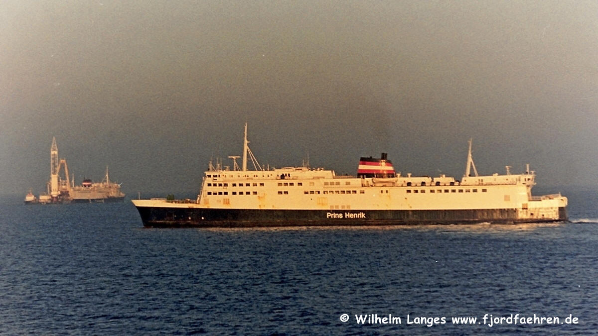 ![]() - 03.1991 - Prins Henrik und im Hintergrund die Dr. Margrete II im Schlepp zur Werft nach Fredericia nach der Havarie im März 1991 |