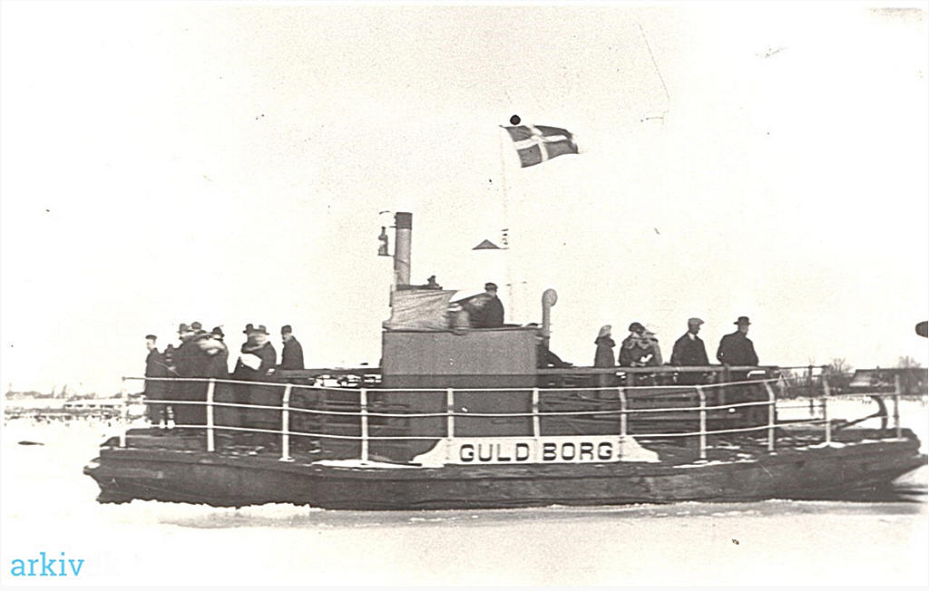 ![]() Færgehavnen i Guldborg ca. 1925 Bildquelle: https://arkiv.dk med tillatelsen av Sakskøbing Lokalhistoriske Arkiv |