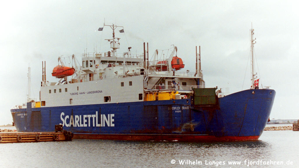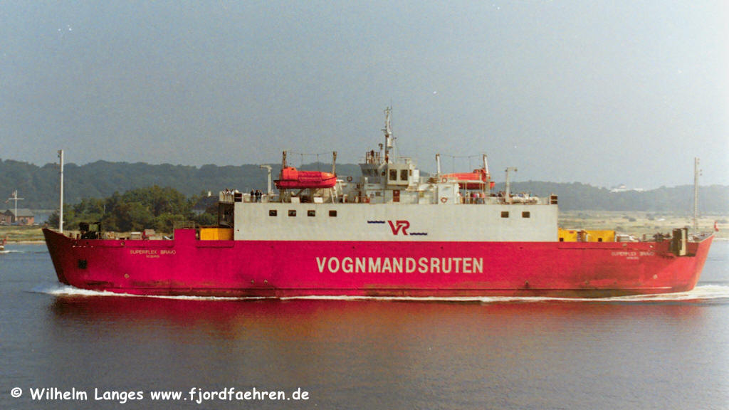 1987 - 1993 - Svea Scarlett 1993 - 1996 - Mercandia VIII 1996 - 2024 - Corfu Star 2024 - ... https://www.faktaomfartyg.se/superflex_bravo_1987.htm |