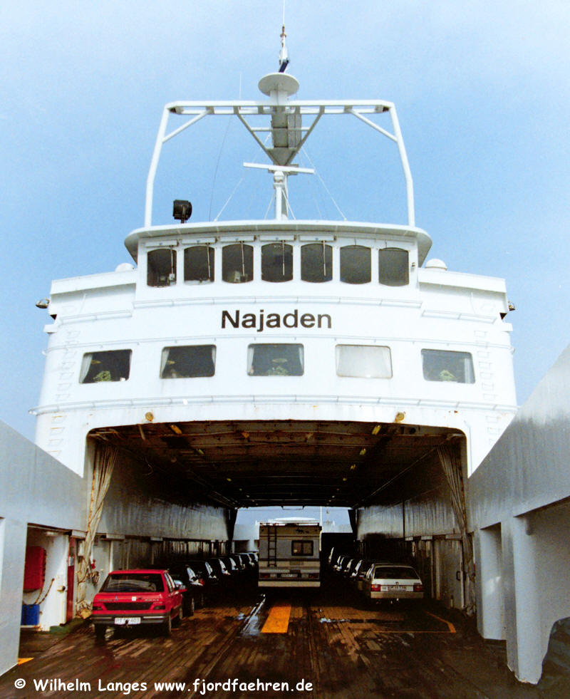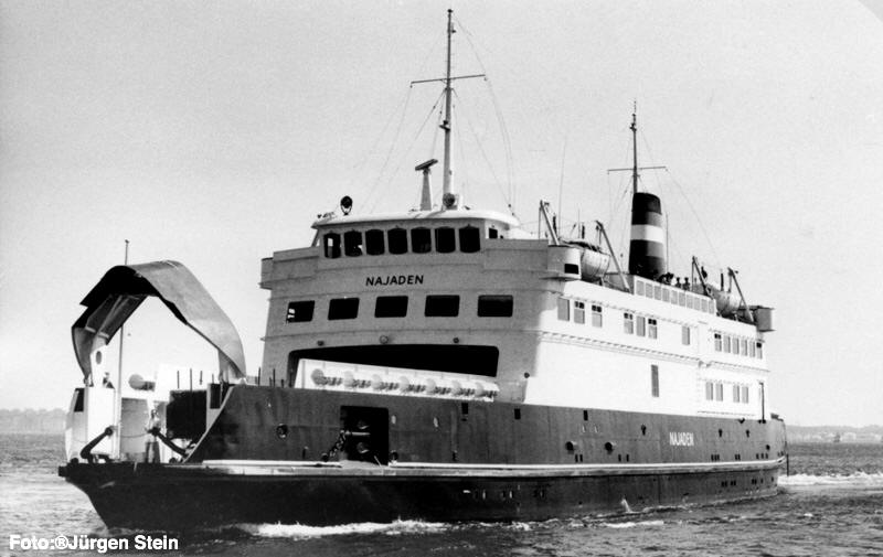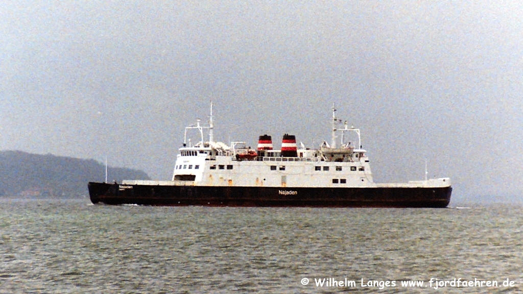 - 10.03.1967 - 26.07.1987: "NAJADEN" Eigner: Det Danske Statsbaner- DSB., København Liniendienst: Helsingør - Helsingborg Bemerkung: Am 02.03.1979 läuft ein Elektromotor heiß und fängt Feuer. Der Brand mußte durch die Feuerwehr in Helsingør gelöscht werden. 27.07.1987 - 31.12.1996: "NAJADEN" Eigner: wie oben Liniendienst: Fynshav - Bøjden 01.01.1997 - 14.09.1997: "NAJADEN" Eigner: DSB Rederi A/S, København Liniendienst: Fynshav - Bøjden 15.09.1997 - 25.05.1998: "NAJADEN" Eigner: Sydfynske Scandlines A/S, Svendborg/ København Kein Liniendienst Auflieger in Nakskov 26.05.1998 - 31.07.1999: "WILHELM KAISEN" Eigner: Nord Elbe Ferry GmbH., Cuxhaven Manager: E. H. Harms GmbH. & Co. Car Feeder Service, Bremerhaven Kein Liniendienst 08.01.1999 - 08.03.2001: "WILHELM KAISEN" Eigner: wie oben Manager: wie oben Liniendienst: Cuxhaven - Brunsbüttel 08.03.2001 - 00.11.2002: "WILHELM KAISEN" Eigner: wie oben Manager: wie oben Auflieger in Cuxhaven 00.11.2002 - 00.02.2003: "WILHELM KAISEN" Eigner: Shipmanagement S.A., Wonsan (Nordkorea) Auflieger in Cuxhaven 00.02.2003 - 00.07.2003: "AMNA" Eigner: wie oben Auflieger in Cuxhaven 00.07.2003 - 31.08.2003: "TASÜCÜ" Eigner: Akgünlrt Shipping, Kyrrenia (Türkei) Auflieger in Cuxhaven 31.08.2003 - 00.09.2003: TASÜCÜ" Eigner: wie oben Überführungsfahrt im Schlepp der "SCANDIC MAMMUT" von Cuxhaven nach Tasücü 00.09.2003 - 00.04.2004: "TASÜCÜ" Eigner: wie oben Kein Liniendienst 00.04.2004 - 15.08.2011: "TASÜCÜ" Eigner: wie oben Liniendienst: Kyrrenia - Tasücü 16.08.2011 - 30.08.2011: "TASÜCÜ" Eigner: wie oben Charter: IOM ( International Organization for Migration / Hilfsorganisation) andere Info: in Charter für die Regierung von Malta Einsatz zur Evakuierung von Ausländern aus Lybien 21.08.2011: Ankunft in Benghazi mit 124 Flüchtlingen an Bord aus Misurata 22.08.2011: Auslaufend Benghazi 25.08.2011: Ankunft in Tripoli 27.08.2011: Ankunft in Benghazi 30.08.2011: Ankunft in Tasücü lt. faktaomfartyg: 07.2011 ins Register von Togo überführt, Heimathafen Lomé ca. 09.2011 neues Register: British Virgin Islands 09. - 12.2011 aufgelegt Tasucu 12.2011 verkauft an türkische Abbrecher: Isyksan Ltd., Aliaga 26.12.2011 in Aliaga angekommen und abgebrochen |