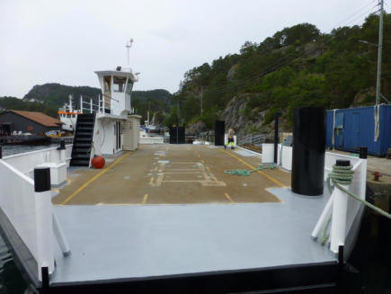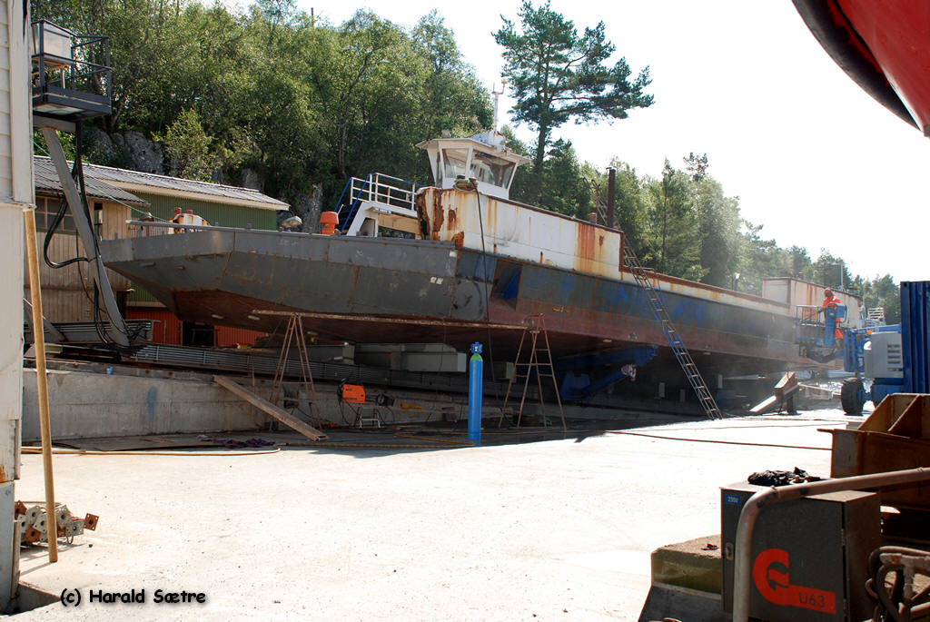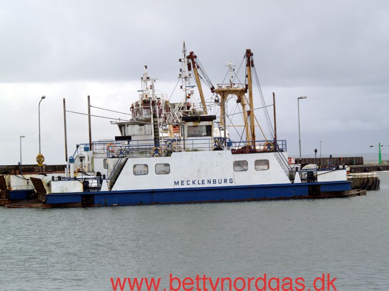 und früherer Fähreinsatz: 1964 - 1999 Travemünde - Priwall 1999 - 2000 aufliegend Travemünde war für den Einsatz auf der Donau in Ex-Jugoslawien (zerstörte Brücken) ab 2000 vorgesehen; 2000 - 2006 aufliegend Eberhard-Werft in Arnis/Schlei - gemeldet: 12.2006 im Schlepp Richtung Esbjerg; am 9.12.2006 in Thyborøn gesehen - s. Fotos - Verbleib 2007 - ca. 2015 unklar - soll 05.2007 noch in Thyborøn gewesen sein !? 07.2015 bei Dåfjorden Slip in Norwegen gesichtet: facebook wird dort zur Arbeitsplattform mit 2 Kranen umgebaut, als Leichter registriert - ab 2016 Einsatz für BK Marine als Arbeitsplattform / Leichter - Infolink - Infolink 2 - Renovierung 2016 Name im NIS/NOR per 16.6.2017 eingetragen |