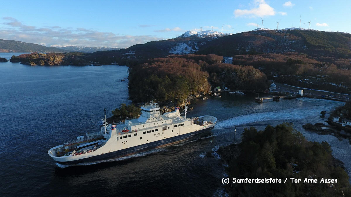 ![]() Bastø III und Fanafjord 02.2019 in Halhjem - draussen auf dem Fjord wartet schon die Selbjørnsfjord |
