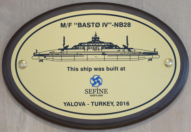 Stapellauf geplant: Überführung 12.2016 - bis 1.11.2016 geführt als "Sefine 28" - Schiffstaufe 12.1.2017 01.2017 - ... Horten - Moss 02.-10.2021 Umbau zur Batteriefähre bei Westcom in Ølen, - Brand an Bord beim Werftaufenthalt in Ølen |