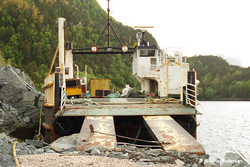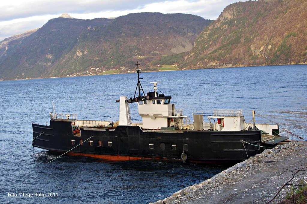 ![]() "Hessa" som anleggsferje ved byggingen av ny tunnel langs Opdølstranda i Sunndal kommune, november 2011. |