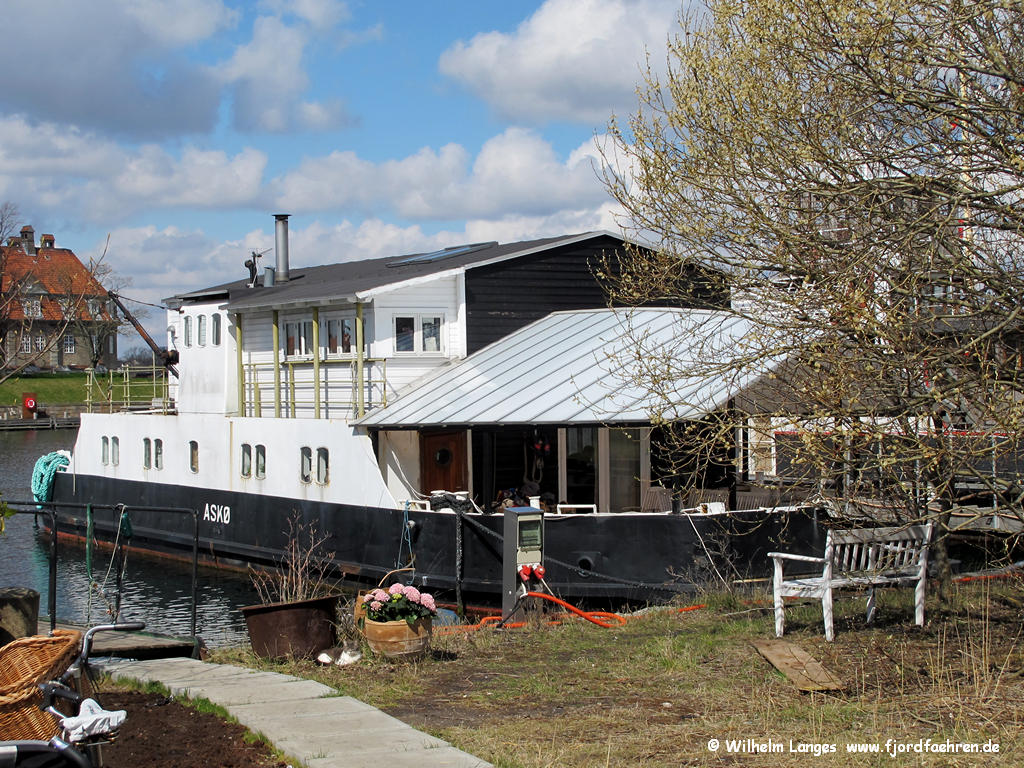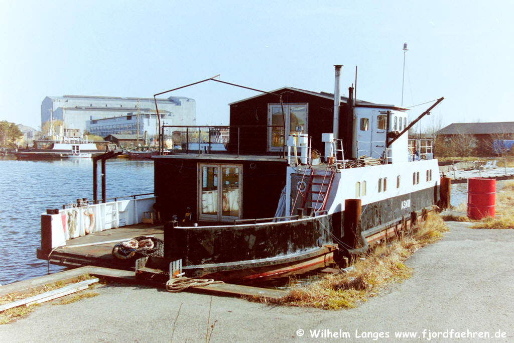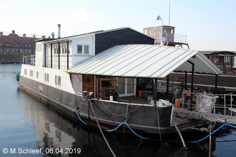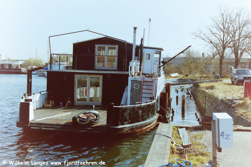 - 1962 Brevik/Porsgrunn - Stathelle, N per 5.3.1963 nach Dänemark verkauft 1964 - 1993 Askø - Bandholm 1993 - 2000 aufliegend Svendborg, geplant als Restaurantschiff 2000 - 2001 restauriert und zum Hausboot umgebaut ab ca. 2001 Hausboot Kopenhagen (Nyholm, Krudtløbsvej) umregistriert als Barge/Prahm (ohne Motor) kort.degulesider.dk |