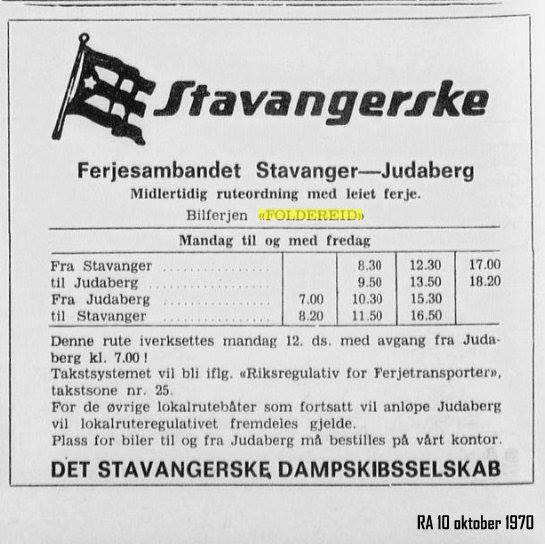 1959 - 1969 Bjøråneset - Teplingan ( - 13.12.1969 / Eröffnung der Follabru) 11.1969 - 1989 ? Kjerstivika - Seierstad - Salsnes und Reserve- / Charterfähre Einsatz am Sognefjord und in Levanger 12.10.1970 Eröffnung der Strecke Stavanger - Judaberg !! - Einsatz dort bis ca. 05.1971 1971 + 1989 Umbauten 1989 - 1992 Ølhammeren - Seierstad 1992 - 1993 aufgelegt 07.1993 nach Mariehamn, Einsatz unklar 1998 nach Schweden ca. 1998 - Frachtfähre Stavsnäs - Stockholms Skärgård für Waxholmsbolaget, zeitweilig auch auch: Reservefähre für Ornö Sjötrafik AB |