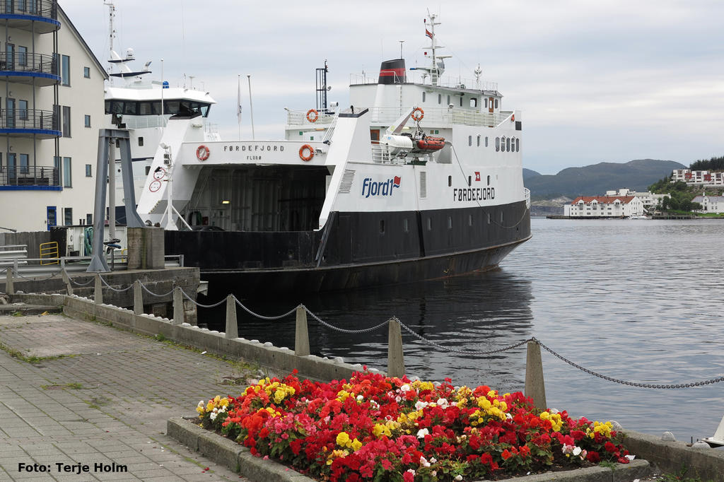 "Førdefjord" ved Devoldholmen ferjekai i Kristiansund før avgang til St. Vincent i Karibia i september 2013. |
