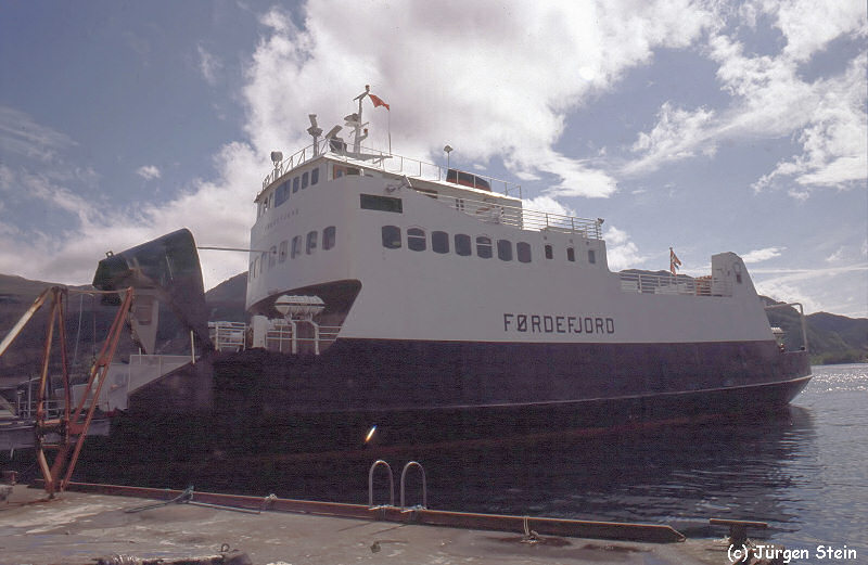 1970 - 1974 Lavik - Oppedal - Brekke 1974 - 1990 Kaupanger - Flåm / auch: Kaupanger - ... - Årdalstangen 1990 - 1992 Måløy - Oldeide 1992 Umbau bei Blaalid Slip, Raudeberg: z.B. geschlossener Bug 1992 - 16.5.2013 Smørhamn - Kjelkenes (bis 1993 auch: - Botnane - Florø) 13.08. - 6.9.2013 provisorische Fährverbindung Kvanne - Todalen (eingerichtet nach schwerem Felssturz) 09.2013 in die Karibik verkauft - Einsatz ab Port of Spain - Chaguaramas - Bequia (lt. MarineTraffic 04.2016) |