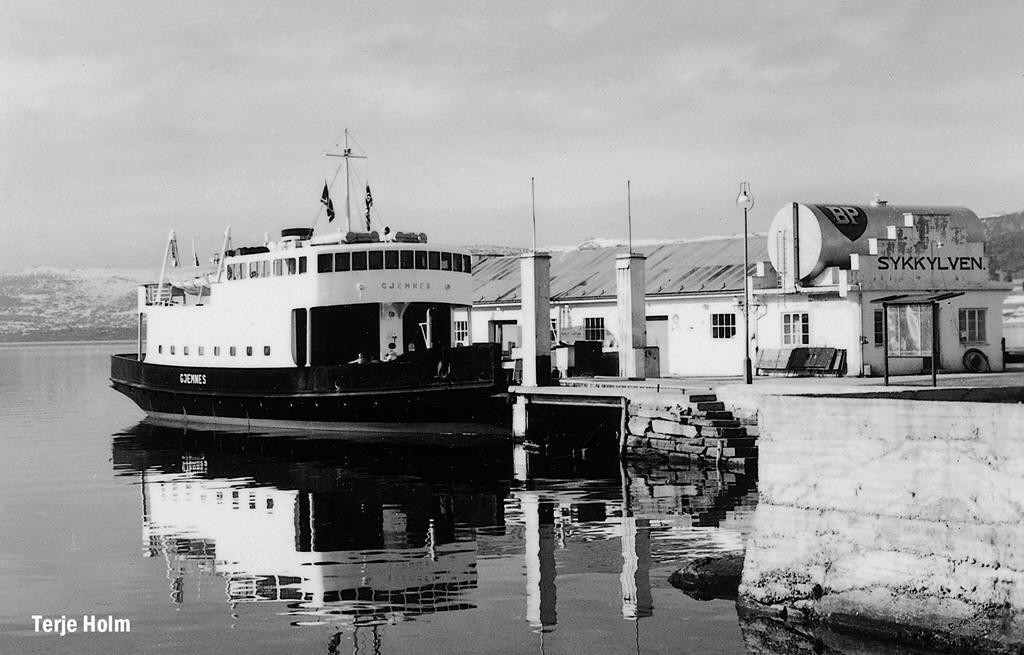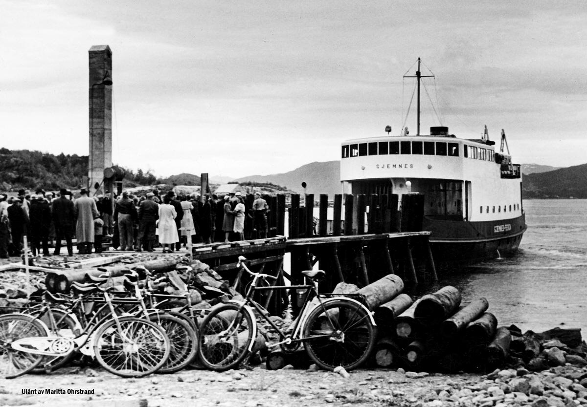 ![]() "Gjemnes" anløper Kvitnes ferjekai for første gang i 1950 |