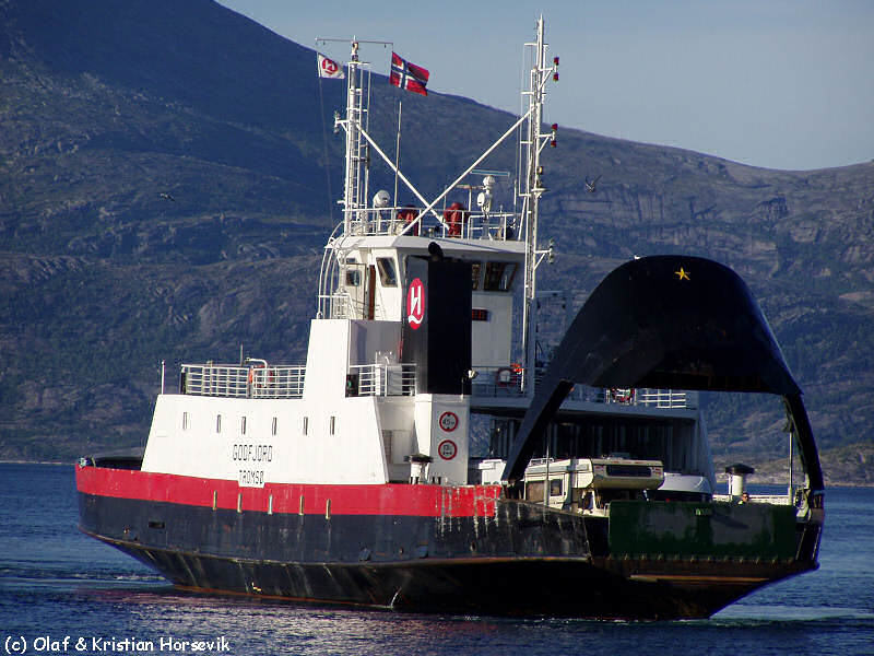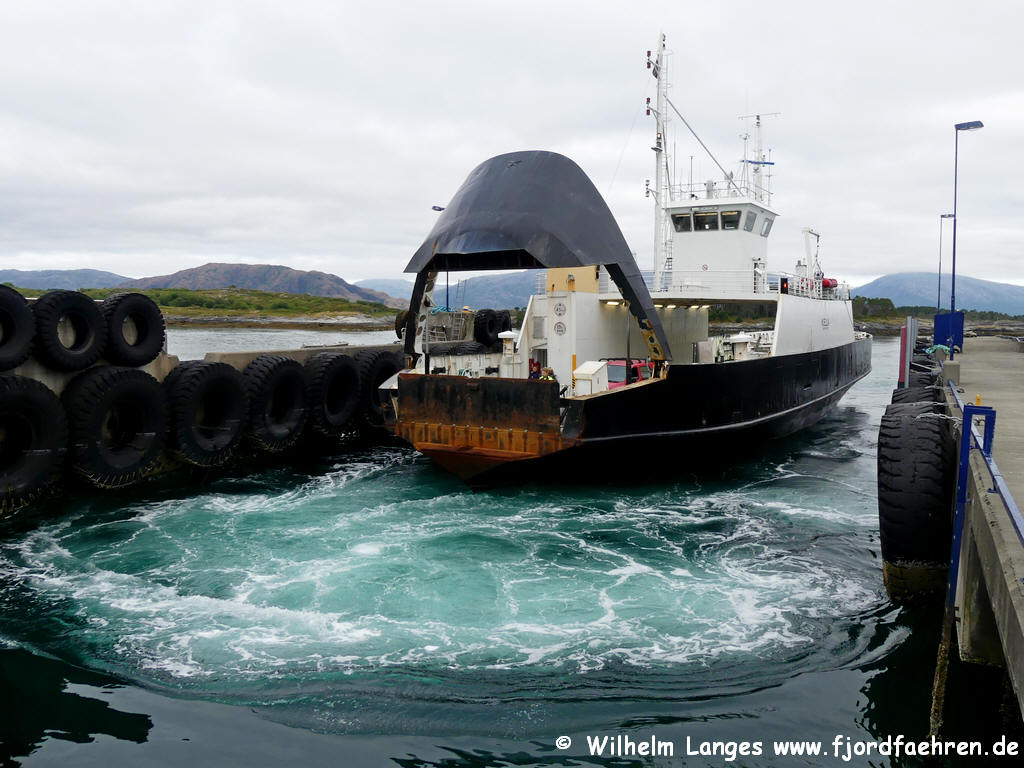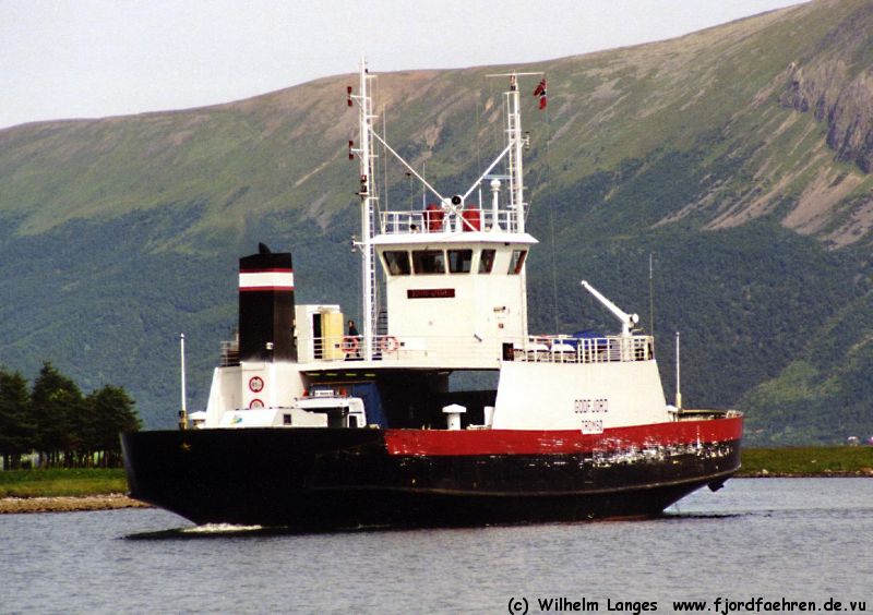 Ablieferung 05.1987 1987 - 2002 Refsnes - Flesnes 2002 Stornes - Bjørnerå 2002/2003 Larseng - Vikran 2003 - 03.2008 Stangnes (Harstad) - Sørrollnes Reservefähre 2008 - 2014: 2008 / 2009 aufliegend in Harstad 2009 auch Skarberget - Bognes (Sommerroute) Ågskardet - Foroy (2010 - Sommerroute) Skarberget - Bognes (2011, 2012 Sommerroute) 11.2011 - 01.2012 Stangnes - Sørrollnes 1.7.2014 - ? Tjøtta - Mindland - Tro - Stokkasjøen - Vågsodden - Forvik 21.09.2015 erneute Havarie, diesmal mit Wassereinbruch bei Stokkasjøen, Fähre wird an den Strand gesetzt - Reparatur in Sandnessjøen bis 03.2016, wieder im Einsatz ab 15.3.2016 - ab 07.2017 B-Fähre dort - ab 2021 Einsatz als Reservefähre, in Kolvereid liegend - ab 03.2022 gelistet unter: Torghatten Midt AS, Trondheim |