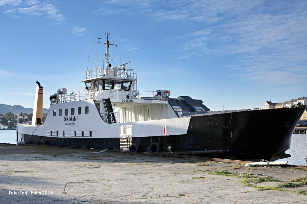 ![]() "Ole Jakob" (ex. "Hareid" og "Sekken") som arbeidsferje ved Hjelkremkaia i Kristiansund 11.10.2015 |