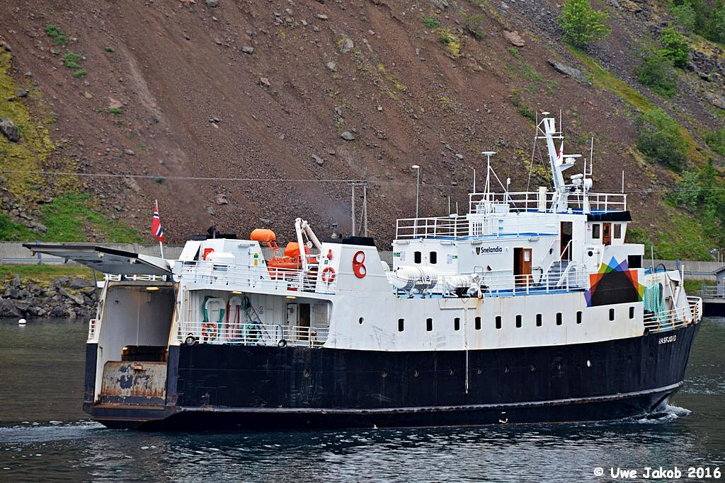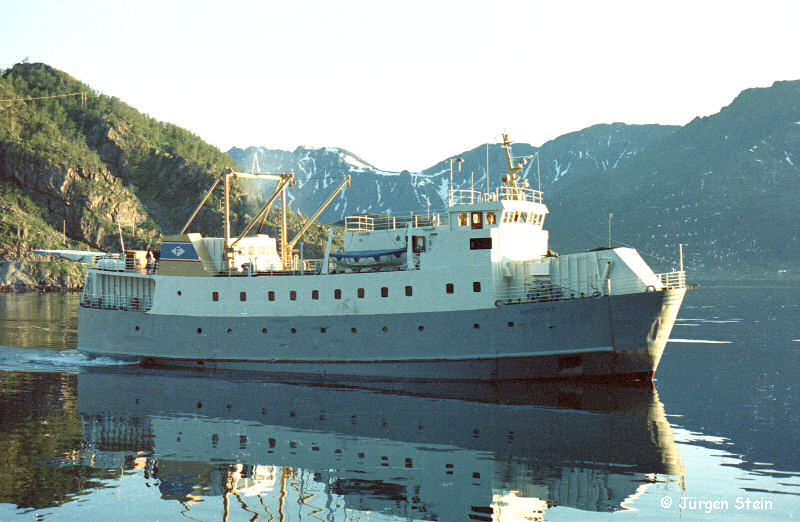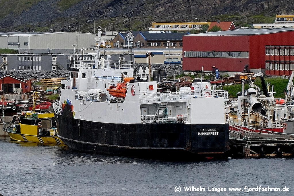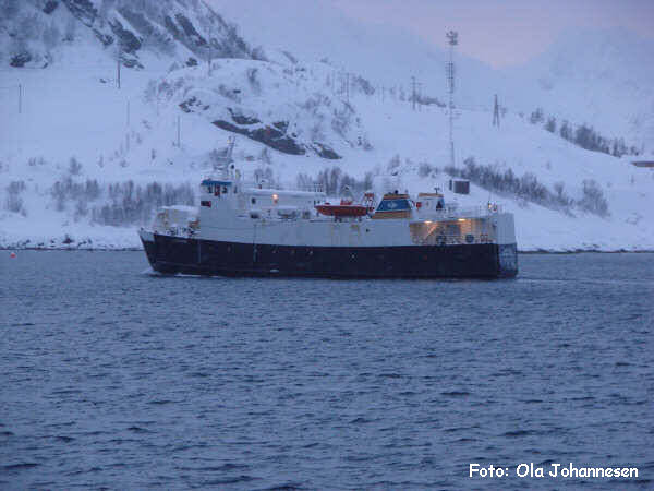 ? + Lokalroute Hammerfest 06.1999 - 2001 Hasvik - Øksfjord 2001 - 12.2015 Øksfjord - Tverrfjord - Bergsfjord - Sør-Tverrfjord 2016 - 2019 Reservefähre, aufliegend: - 07.2017 in Hammerfest - 07.2018 in Hemnesberget per 25.10.2019 an Norsk Megling verkauf 12.2019 weiter zu den Färöern verkauft - soll als lokale Frachtfähre eingesetzt werden - 12 Pass. - 12.2019 - 02.2020 Renovierung in Sandnessjøen 20.2.2020 in Thorshavn angekommen 12.5.-xx.2020: Einsatz Gamlarætt - Skopun (Frachtfähre) - bis 06.2023 Frachtfähre für des Sandoyar-Tunnel (viele technische Ausfälle am Schiff) - aufgelegt in Strond 07.2023 zum Abbruch verkauft |