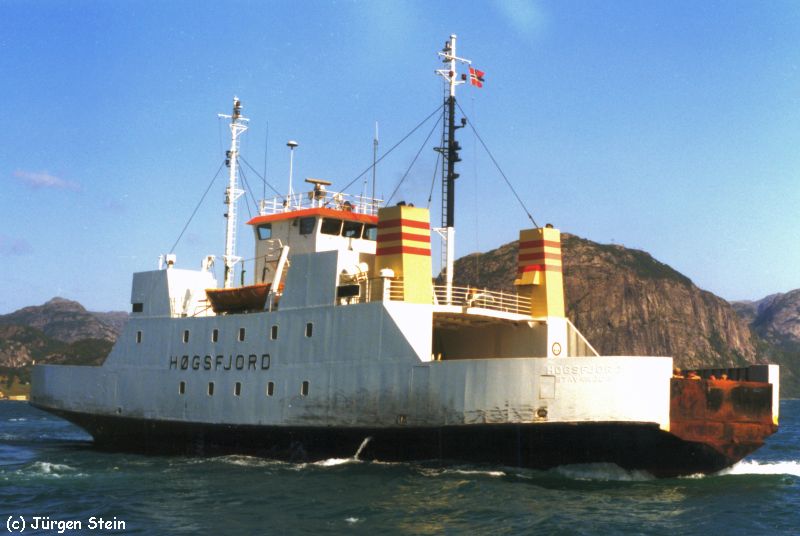 Ablieferung 4.7.1978 1978 - 1990/92 Forsand - Lauvvik 1990 - 1992 Stavanger - Nesheim 1993 - 1995 unklar 1995 - 2005 Årvik - Kopparnes / Årvika - Koparneset 2005 - 04.2008 Arasvik - Hennset 2007 Kvanne - Røkkum (2 Monate als Ablösefähre) 2008 (Sommer) Kristiansund - Bremsnes 2010 (Sommer) Sæbø - Leknes - Standal 2008 - 2013 Reservefähre 01.2012 - 02.2012 Kvanne - Rykkjem 02.2012 - 04.2012 Arasvika - Hennset Sommer 2012 Sæbø - Leknes - Standal 12.2013 verkauft 2014 - 2020 Stavanger - Byøyane / Reservefähre Stavanger - Vassøy 01.2021 - ca. Sommer 2022: Ryfylkeferja: (Stavanger) / Nedstrand - Ryfylkebassenget: Fisterøyene -...- Hebnes - Foldøy in Charter für NORLED 05.-12.2024 Stavanger - Vassøy 1.1.2025 - 04.2026 Lauvvik - Lysebotn |