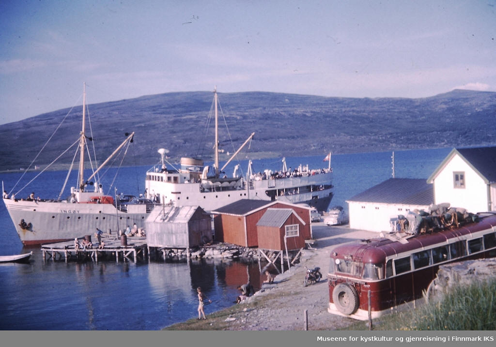 ![]() Russenes: Lokalbåt M/S "Ingøy" ved kaia. Båten gikk til Honningsvåg. Ca. 1960/1961. https://digitaltmuseum.no/ - (CC BY-NC-ND) |