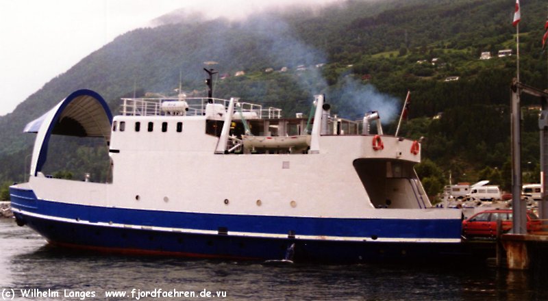 1962 - 1973 Reservefähre Einsätze u.a.: Solavågen - Sæbø - Øye, Hjørundfjorden (1966) 1966/1967 Hareid - Sulesund Geiranger - Hellesylt Stordal - Stranda - Valldal 1973 - 1975 Eiksund - Rjånes - Berkneset - Velsvik 1975 - 02.1977 Eiksund - Rjånes - Berkneset 1977 - 1981 Tingvoll - Angvik ? - ? Ervik - Rendal 1981 - 1990 Reservefähre Einsätze u.a.: Geirangerfjord Eidsdal - Linge (z.B. 1986) Aukan - Vinsternes - Kyrhaug - Straumen (Sommer 1983 - 1984) 1991 Åndalsnes - Innfjorden (Sommer, temporäre Fährstelle nach Felssturz) 1992 - 1996 Restaurantschiff "Ferja" in Trondheim 1996 - 1997 Norddal - Geiranger (Touristenroute im Sommer) 2001 nach Haiti verkauft andere Info: Flagge Kambodscha / Kampuchea ??? 2003 in der Karibik gesunken |