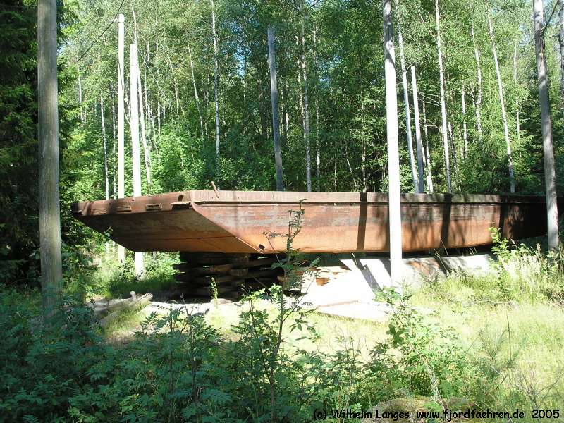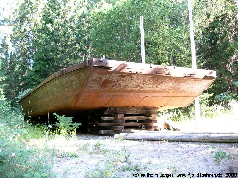 ? - 1995 ? Gebrauch als Leichter ("brukt som lekter") sollte restauriert werden seit 1995 aufliegend Svartevik / Kroksund "am Ende einer kleinen Bucht des Rødessjøen, südwestlich der Kroksund-Brücke ca. 100 m vom RV 123 / ved enden av Svartevik / Rødenessjøen, sørvest Kruksund-bru ca. 100 m fra RV 123) |