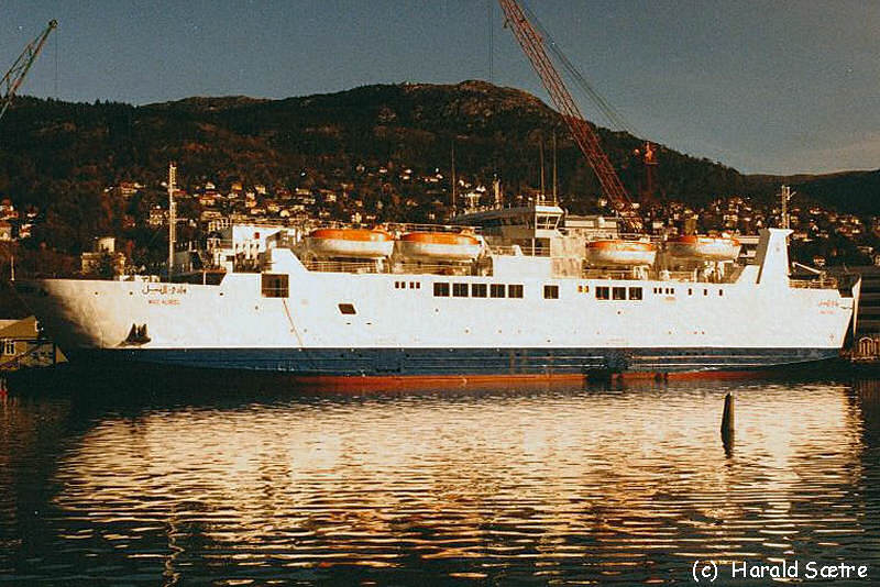 Ablieferung 06.1988 06.1988 - 05.1993: Bergen - Kleppestø/Askøy tagsüber und als Nachtfähre: Bergen - Bjergsted/Stavanger bzw. Mekjavik/Stavanger auch Skudeneshavn - Mekjavik 1993 Umbau in Bergen bei Mjellem & Karlsen 06.1993 nach Ägypten verkauft 1993 - ca. 2013 Suez - Jeddah (Rotes Meer) 2013 nach Saudi Arabien verkauft 2013 - ca. 2018 Port Sudan - Jeddah (Rotes Meer) - letzte AIS-Info: 09.2019 lt. equasis: 2018 sold undisclosed interest |