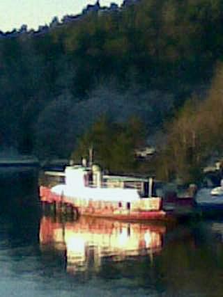 Mobilbildet fra Arne Tvedt er tatt i januar 2010. Her ligger fergen ved Sunde kai i Bårdsund på Reksteren i Tysnes kommune. Siste stopp før hugging på Hanøytangen. |