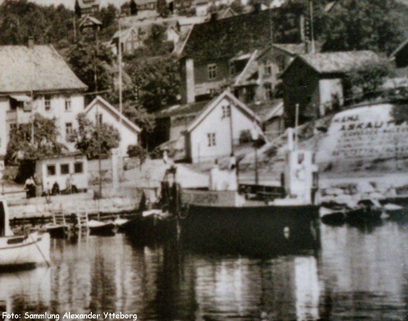 Umbau zur Autofähre 1931 1931 - 1954 Drøbak - Storsand i Hurum 1954 - 1957 aufgelegt 1956 verkauft an Br. Wilhelmsen 1956/1957 Umbau 5.1957/58 (?) - 1961 Salhus - Frekhaug - Isdalstø - Alverstraumen (in Charter für A/S Ferjetrafikk, Bergen ?) 1962 - 1975 Alvøen - Bjorøyhavn 1976 - 1977 Hundvagøy - Store Kalsøy (in Charter für Austevoll Ferjeselskap) 1977 - 1979 Vercharterungen und aufgelegt 1979 - 1989 unklar 1989 zum Leichter abgebaut, aufgelegt im Osundet (Ona, Øygarden) nach 1991 unklar; Eigner 1991 verstorben lt. Registerauszug per 02.2006: ungeklärter Status ("FARTØYETS STATUS ER UAVKLART") Info von 09.1989: "Observert liggjande nedrigga i Osundet, Øygarden" |