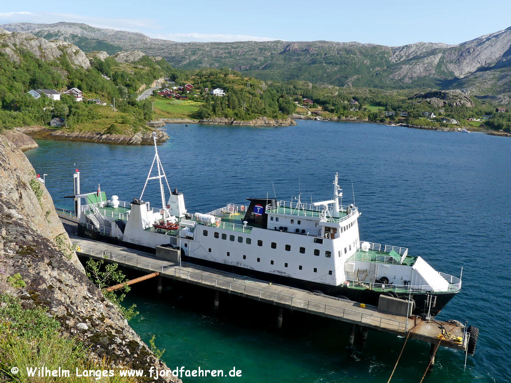 05.1972 - 12.1989 Lødingen - Bognes 05.1972 - 12.1976 auch Lødingen - Rinøyvåg - Winter 1983/84 in Charter für Det Stavangerske Dampskipsselskap - 1986 in Charter für Nord-Trafikk- - 1987 und 1988 Sommercharter für Finnmark Fylkesrederi-Charter: Honningsvåg - Repvåg - 1990 - 1999; 2001; Moskenes - (Værøy - Røst - ) Bodø (Sommereinsatz und Reserveschiff) - 2000; 2004; 2007; Lødingen - Bognes und Reservefähre - 2002 Kjøpsvik - Drag - häufige Einsätze Øksfjord - Hasvik: 1998/99, 1999/2000; 2002; 2004; 2007 2001 umfassende Renovierung Sommerroute: Andenes - Gryllefjord (Andøy - Senja) 2008, 2009, 2010, 2011, 2010, 2017 (04.-06.) weiter Reservefähre in Nord-Norge: - u.a. für Svolvær - Skutvik - per 9.5.2012 neuer Name "Skutvik" - Sommer 2017/2018/2019/2020 Jektvik - Kilboghamn - 10.2020 aufgelegt Eidet / Vesterålen 6.9.2021 - 2024 "Malangsforbindelsen" Botnhamn - Brensholmen 12.2024 verkauft nach St. Vincent / Mustique Überführung Juli 2025 2025 - ... Kingstown - Mustique |