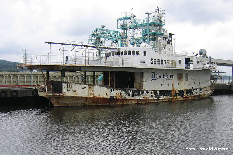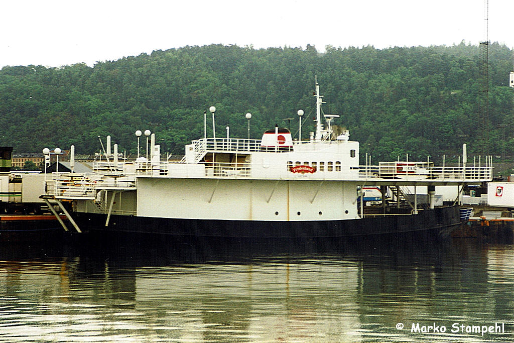 1966 - ? Sommerroute Brimnes - Bruravik 1967 - 1970 Gjemundshamn - Varaldsøy- Løfallstrand ? - ? Fjelberg - Utbjoa - Leirvik Plan 1976: Siggjarvåg - Sagvåg 1977; 1979 - 1984: Flatråker - Huglo - Jektevik ? - ? Bjorøy - Alvøen ? - 1995 Tørvikbygd - Jondal - diverse Routen Sunnhordland als Extra-/Reservefähre 1996 - 2000 Restaurantschiff Aker Brygge, Oslo 2000 - 2008 Restaurantschiff "Lystbåten" in Moss, nahe dem Anleger der Bastø-Fähren nach Horten - 26.10.2008 im Hafen von Moss gesunken Infolink Moss Dagblad Infolink Moss Avis - Ende Februar 2009 gehoben moss-avis.no - 2009 - 2010 aufliegend in Moss - zwischenzeitlich im Eigentum der "Rygge Vaaler Sparebank 1 Moss", aber 03.2009 zurückgekauft - 09.2010 nach Horten geschleppt, später bei Drammen Slipp in Drammen gesichtet - 2012 - 2014 in Lierstranden bei Drammen aufgelegen - 10.2014 nach Ausfall der Lenzpumpen dort gesunken - Abbruch geplant - per 11.7.2017 aus Register gestrichen |