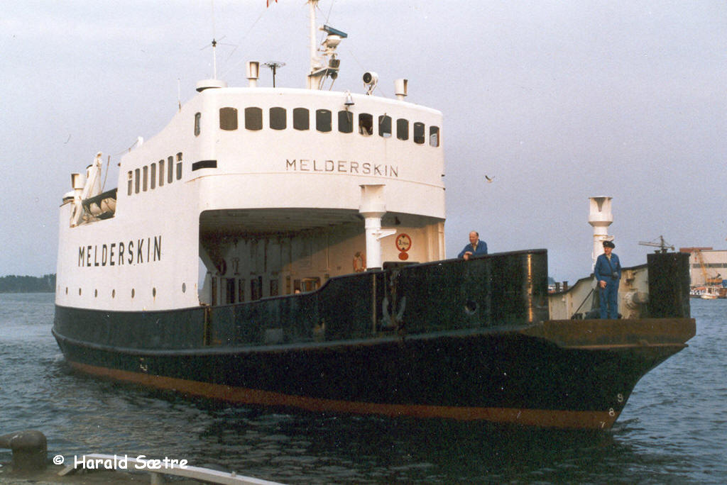 ex. "Melderskin" som restaurantbåten "Fergekroen" ved Aker Brygge i Oslo, 1995. Foto: Harald Sætre Av Harald Sætre – Self-published work by Harald Sætre, CC BY-SA 4.0, https://commons.wikimedia.org/w/index.php?curid=568491 |
