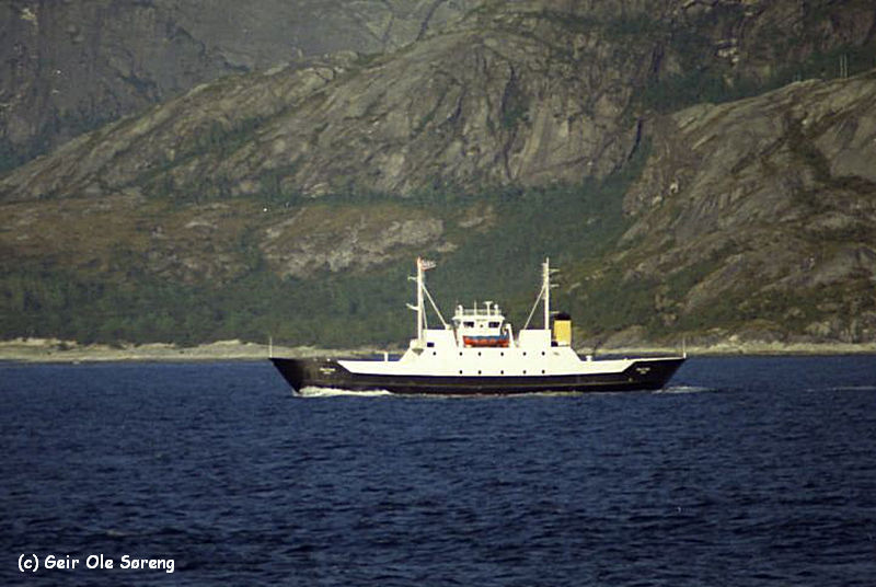- im Winter Vercharterungen - 1989 - 1991 HTS Charter 1991 - ? Sandnessjøen - Engan (Herøy) - Austbø - Brasøy ? - 12.2013 Søvik - Austbø - Herøy (Herøy) - Brasøy ca. 10.2014 - ...(2018) Sømes - Hundåla - Vikdal - Mosjøen Reservefähre: - ? - 05.2020 Levang - Nesna - ab 06.2020 - ... Tjøtta - ... - Forvik - xx.2021 Nesna-Nesnaøyane 09.2021 - xx.2022 Hidrasund: Kvellandstranda - Lauvnes xx.-xx.2022 / 08.2023 - ... Tjøtta - ... - Forvik + Reservefähre Finnmark |