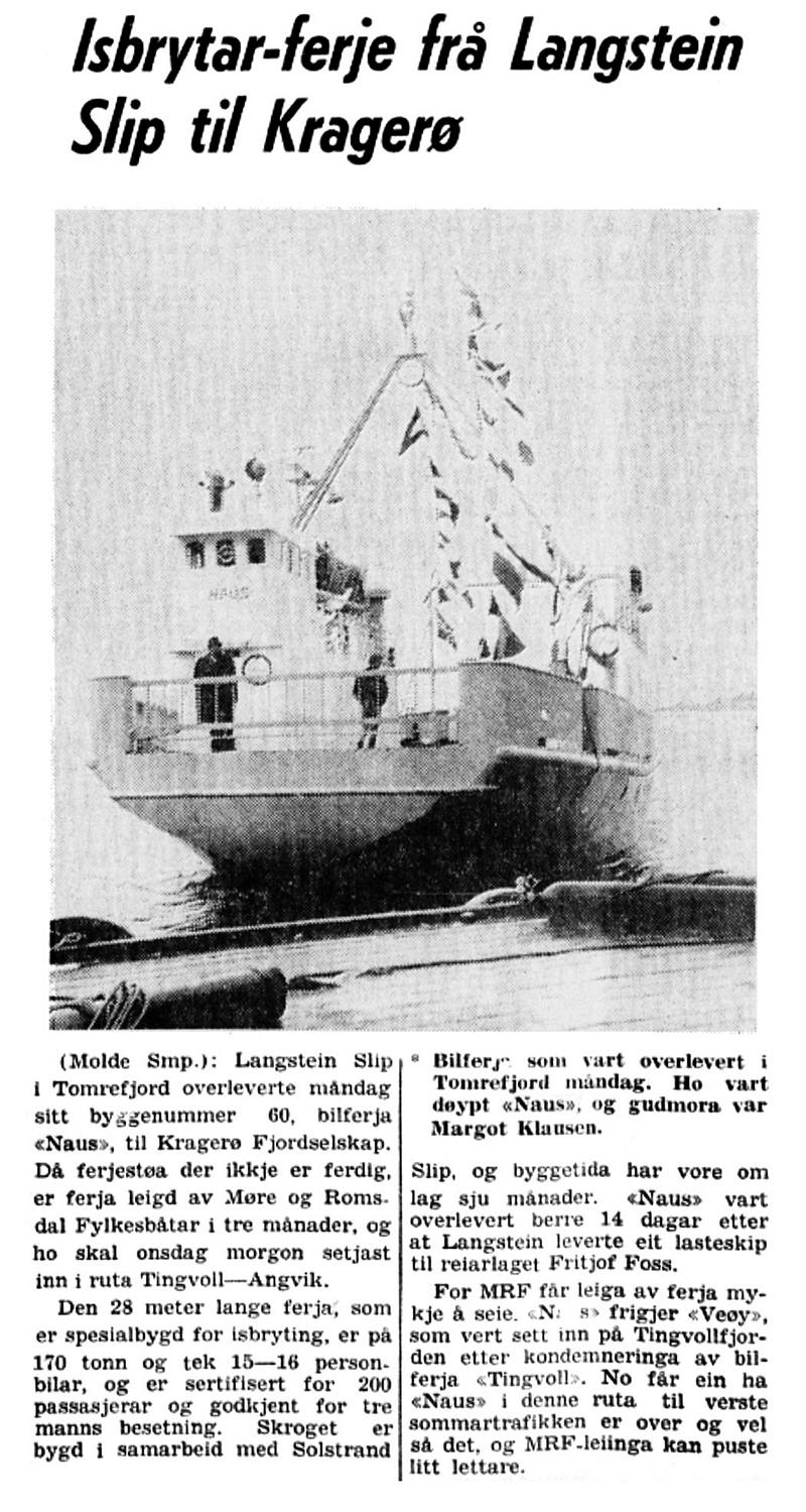 - 1973 Angvik - Tingvoll in Møre og Romsdal Fylkesbåtar AS (MRF)-Charter ab 1973 Kragerø - Stabbestad - Skåtøy - Jomfruland |
