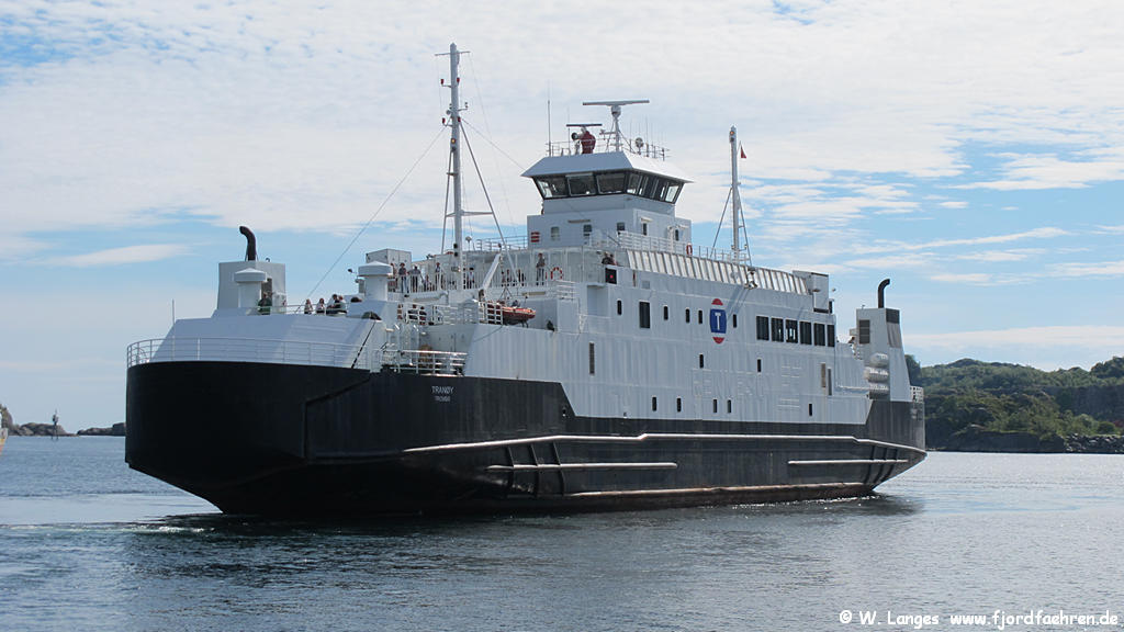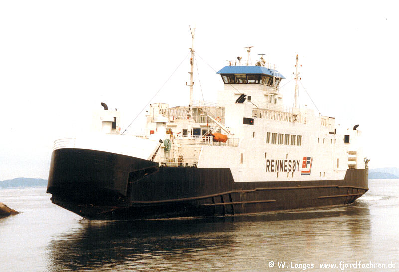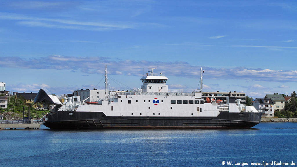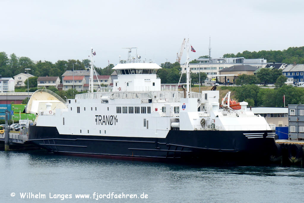 1990 - 04.1991 Molde - Vestnes (in Charter) Winter 1991/1992 Flakk - Rørvik (in Charter) 11.1992 verkauft an RTS 1993 - 2006 Arsvågen - Mortavika 01.2007 - 12.2009 Stavanger - Tau 01. (?) - 12.2010 Krokeide - Hufthammar Reservefähre ab 2011 06.2011 - ca. 08.2011 Svolvær - Skutvik (Sommerroute) 12.2011 an Torghatten Nord verkauft per 21.12.2011 Namensänderung in "Tranøy" 5.3.2012 - 05.2012 / 08.2012 - 12.2012 : Stangnes - Sørrollnes 06.2012 - ca. 08.2012 Svolvær – Skutvik 09.2012 an BastøFosen übergegangen Namensänderung 01.2013 Horten - Moss 2013 - 04.2017 ab 22.2.2016 bzw. 20.4.2017 neuer Name 04.-05.2017 / 01.-04.2019 Reservefähre Horten - Moss und weitere Reserveeinsätze: z.B.: 05.2017 Krokeide-Hufthamar 07./08.2017 Bodø - Moskenes 04.2019 Halhjem - Sandvikvåg Sommer 2019 ff ... Bodø - Moskenes sonst: aufliegend in Stokmarknes auch Reservefähre Bognes - Lødingen |