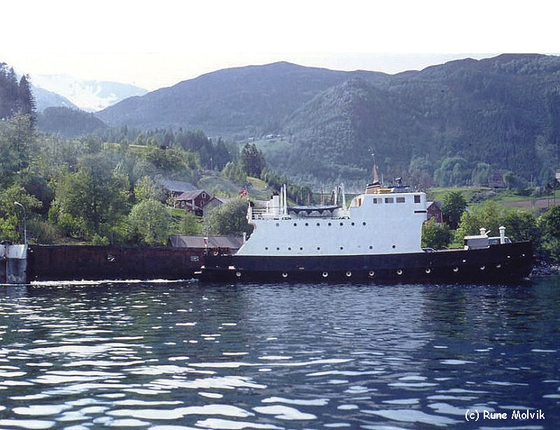 ![]() Bilferga "Nordmøre" går frå kai på Lauvstad i 1978 |