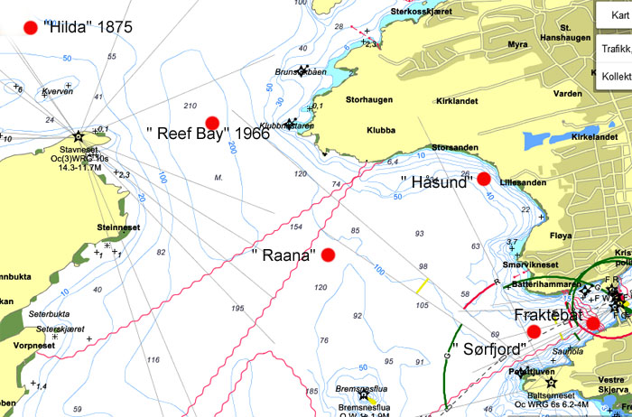 1960 - 1965 Geiranger - Hellesylt / Stranda - Stordal 1965 - 1967 Kvanne - Røkkum 1968 - 1969 Brattvåg - Dryna - Fjørtoft ? - ? Gullstein - Vinsternes ca. 1970 Festøy - Solevåg - Hundeidvik 1973 - 1977 Larsnes - Åram - Kvamsøy - Voksa 1978 Gullstein (Tustna) - Nordheim - Vinsternes 1978 - 1980 Aukan - Vinsternes 1984 - 1985 Aure - Ånes 1986 - 2001 Einsatz als Arbeits-/Transportschiff in Føresvik 2001 - 2005 (?) Fischindustrie ? 02.2006: aufliegend Saltdalsverftet i Rognan Verkauf 11.2006 2007 - 2014 Transportschiff / Arbeitsschiff - 04.2014 nach Konkurs des Eigners verkauft - 17.4.2014 auf der Überführung nach Bomlø durch den neuen Eigner Optiship AS bei Hestskjæeret Fyr / Averøy auf Grund gelaufen, später am Tag beim Abschleppen nach Kristiansund / N im Bremsnesfjord gesunken / liegt auf 100 m Tiefe |