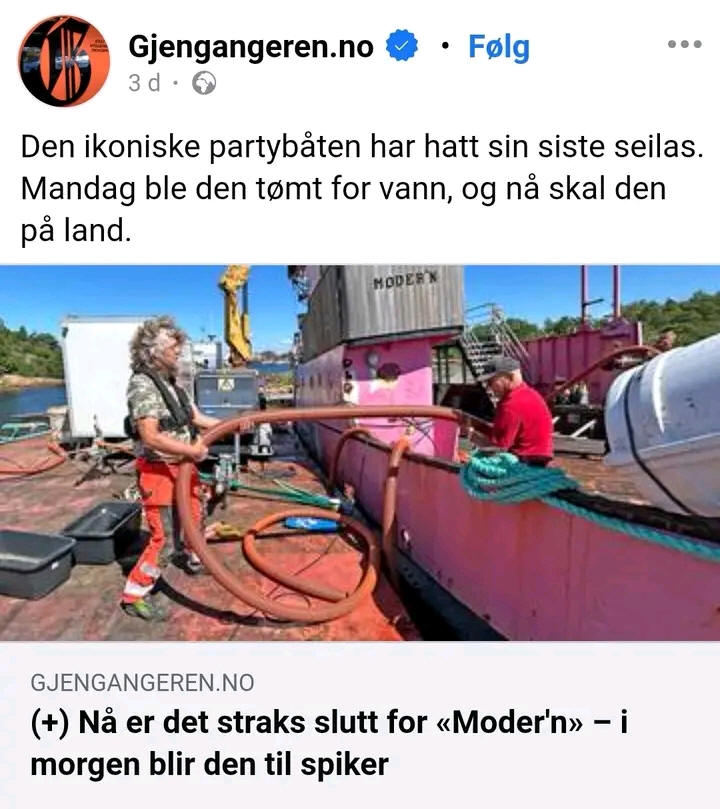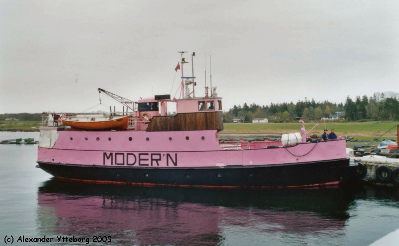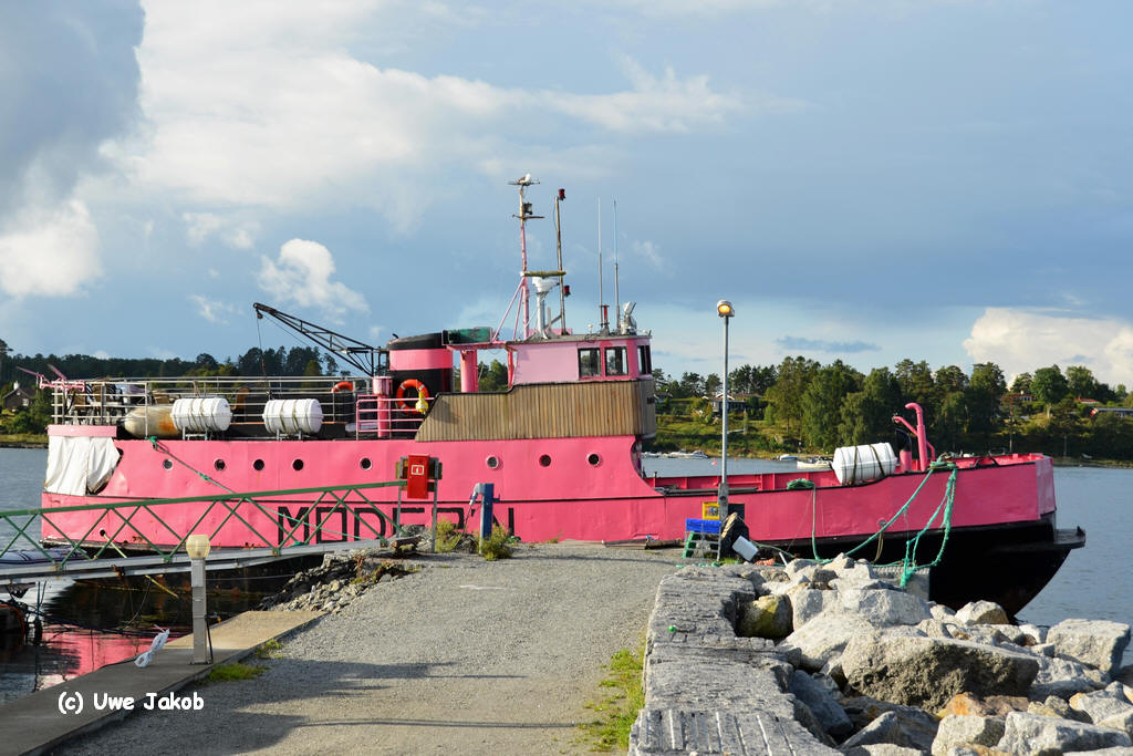Ablieferung 02.1959 1959 Valldal - Eidsdal - Ytterdal 1959 - 1965 Aukra - Hollingsholm - Sundsbøen 1965 unter Begleitung des norwegischen Marineschiffes HORTEN zu den Shetlands gebracht, um das Konzept einer kleinen Inselfähre vorzuführen ( Bilder dazu Shetland Museum) + Video National Library of Scotland 1966 - 1973 Larsnes - Åram - Kvamsøy - Voksa ( - Stadlandet) 1973 - 1975 aufgelegen/Reserve 1975 - 1977 Molde - Bolsøya 1977 - 1983 aufgelegen/Reserve 1983 - 1985 unklar 1985 - 1993 Chartertouren Oslofjord 1993 - ? Helgeroa - ... - Langesund / Sørland ? - ? Passagiertransport / Ausflugsschiff: Helgeroa - Langesund bis xxxx. nur noch Chartertouren - shipspotting - 30.6.2018 aufliegend bei Larvik 08.2022: steht zum Verkauf; Verkauf erfolgt 05.2023 02.2024 im Oslofjord havariert Abbruch 07.2024 |