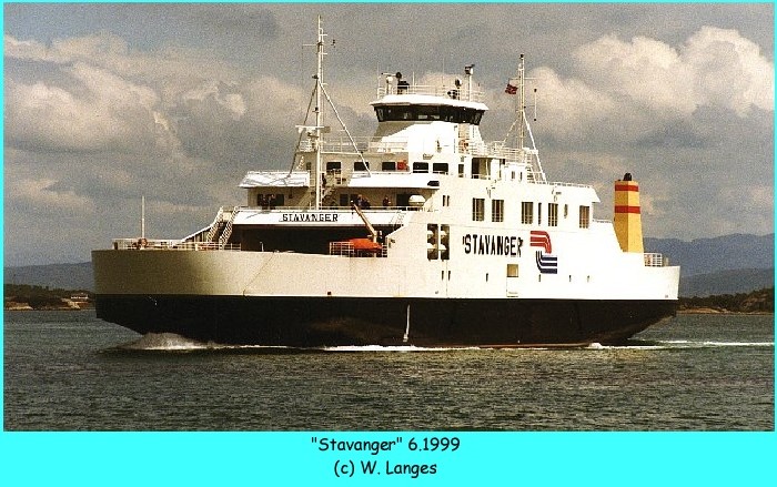 - 2001 - 01.2007 Halhjem - Sandvikvåg - 2007 - 2008 Skjersholmane - Ranavik - Sunde - 2008 Reservefähre - 09.2008 - 10.2009 Ålesund / Flatholmen - Valderøya, nur in Abend-/Nachstunden bei Renovierung der Tunnelverbindung - 01.2010 - 12.2013 Stavanger - Tau 01.2014 - ca. 11.2014 Skjersholmane - Ranavik 12.2014 - ca. 04.2015 Leirvåg - Sløvåg Reservefähre: - z.B Sommer 2016 Lavik - Oppedal / - Årsnes - Gjermundshamn (2018) - 2017 - 2019 Reservefähre Lavik - Oppedal - 10.2019 an Boreal Sjø verkauft - 11./12.2019 nochmals Reserveeinsatz Stavanger - Tau und Lauvvik - Oanes 30.12.2019 um 12.00 Uhr: letzte Fahrt Stavanger - Tau 1.1. - 20.3.2020 private Fährverbindung: Lauvvik - Oanes, am 20.3.2020 u.a. wegen der Corona-Krise aufgegeben 04.2020 - ... Reservefähre 1.1.2021 - ca.06.2021 Molde - Vestnes 10.2022: zum Verkauf stehend aufliegend Stavanger per 19.4.2025 verkauft |