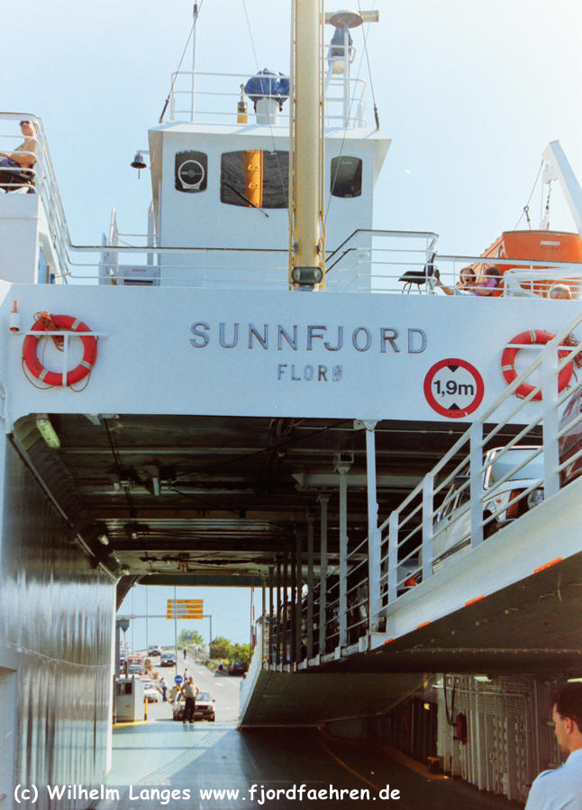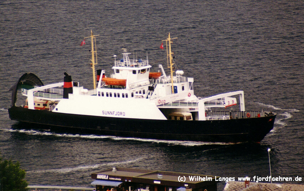 1979 - 1986 Kaupanger - Gudvangen / auch: Ablösefähre 1986 - 2006 Dragsvik - Hella - Vangsnes Ablöseschiff 2006 - 04.2010 Rutledalen- / Rysjedalsvika - Krakhella 05.2010 - 2023 Reservefähre - Sommerfähre Hella - Dragsvik 2010 - 2016 (?) - 12.2015 - ?: Stårheim - Isane - Sommer 2017 Seivika - Tømmervåg - 01.2018 Brekstad - Valset 2019 Sommerfähre 06. - 08. Stranda - Liabygda 09.2019 Molde - Sekken 09.2019 Tømmervåg - Seivika 18.3.2024 zum Abbruch nach Fosen Gjenvinning |