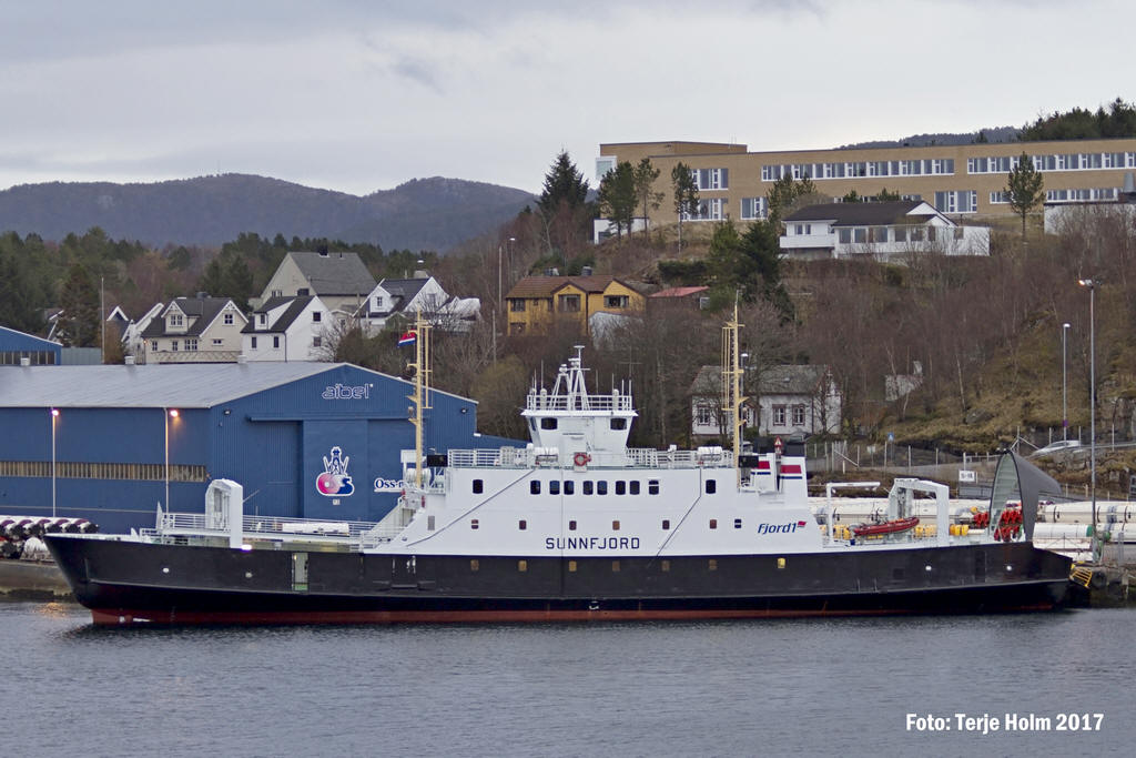 ![]() "Sunnfjord" på verkstedopphold ved Kristiansund Mekaniske 23. april 2018 |