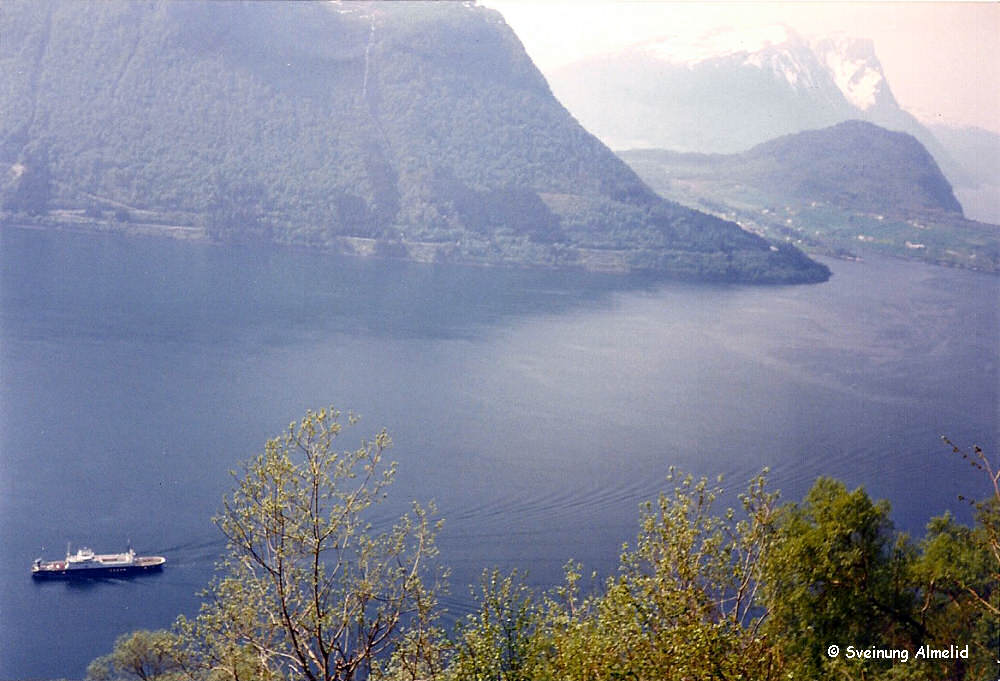 ![]() Røsund ved Innfjorden i 1990 (fra lia under Skolten) |