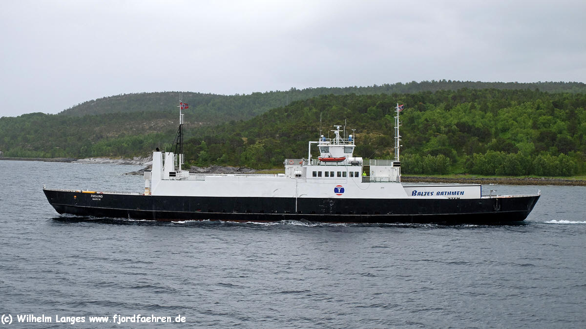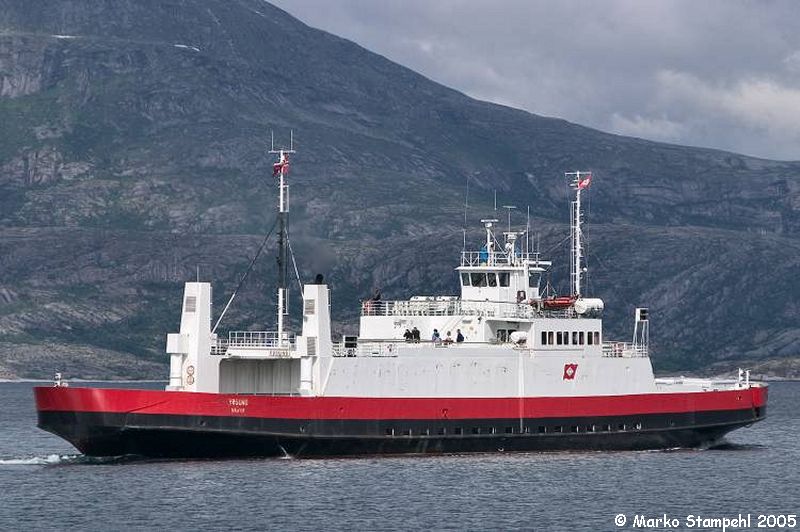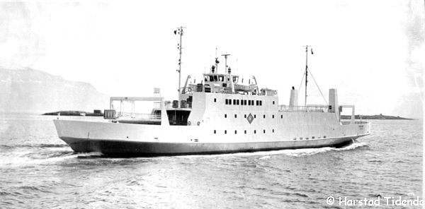1982 - 1993 Bognes - Skarberget 1987 Verlängerung bei Harstadverkstedene um 16 m, Einbau Hängedeck 1988 Demontage des Hängedecks 1990/1991 provisorische Fährstelle Innfjorden 1993 Hareid - Sulesund (Møre og Romsdal Fylkesbåtar AS - Charter) 1993 - 1995 Hardanger Sunnhordlandske Dampskipsselskap (HSD)-Charter 1996 Bastø-Fosen / Fosen TL - Charter 2000 - 2002 Bognes -Skarberget (lt. Plan zugeordnet) 2008 Motorhavarie Vercharterungen / Reservefähre - stationiert in Skarberget Sommer 2010 / 2011: Tjøtta - Forvik 10.2011 - 06.2012 Hauptfähre für Hofles - Geisnes - Lund - ab 07.2014 - ? B-Fähre Tjøtta - Forvik - Sommer 2015 Bognes - Skarberget dto. 2017 - Sommer 2019/2020 Festvåg - Misten -> 06.2021 - ? Nesna-Sambandene: (Levang) - Nesna - Vikholmen - Handnesøya - Tomma 03.2023 Werftaufenthalt Westcon Helgeland diverse Reserveeinsätze |